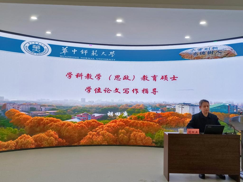 为进一步提高我院研究生教学研究能力和学位论文写作水平,12月5日,学院邀请华中师范大学365英国上市集团学科教学(思政)专业学位负责人胡田庚教授作了题为“学科教学(思政)教育硕士学位论文写作指导”的讲座。讲座由学院党委书记刘建军主持,研究生导师和全体研究生共90余人聆听了讲座。