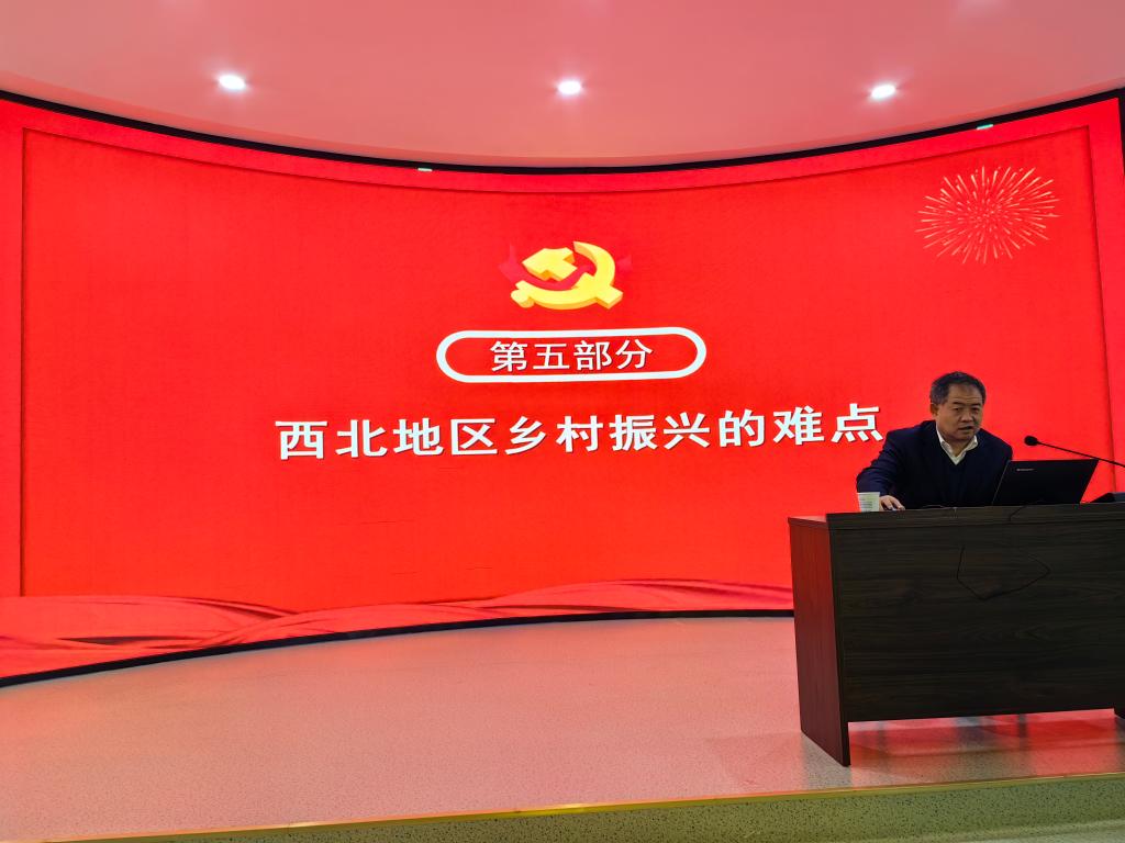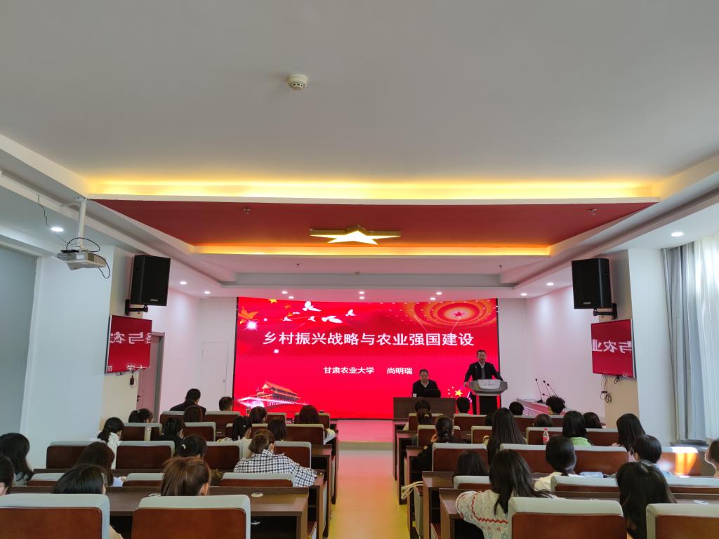 为扎实推进学院“三抓三促”工作深入开展,3月31日下午,甘肃省高校思想政治理论课教学指导委员会委员、甘肃省思想政治理论课名师工作室主持人、甘肃省大中小学思政课一体化建设指导委员会专家、甘肃省广播电视总台农村广播“智库专家”、甘肃省人民政府参事室特约研究员、甘肃农业大学甘肃农村发展研究院执行院长尚明瑞教授应邀来校作学术报告,365英国上市集团、甘肃省思想政治理论课余明远名师工作室共100余名师生聆听了报告。报告会由365英国上市集团党总支书记刘建军主持。