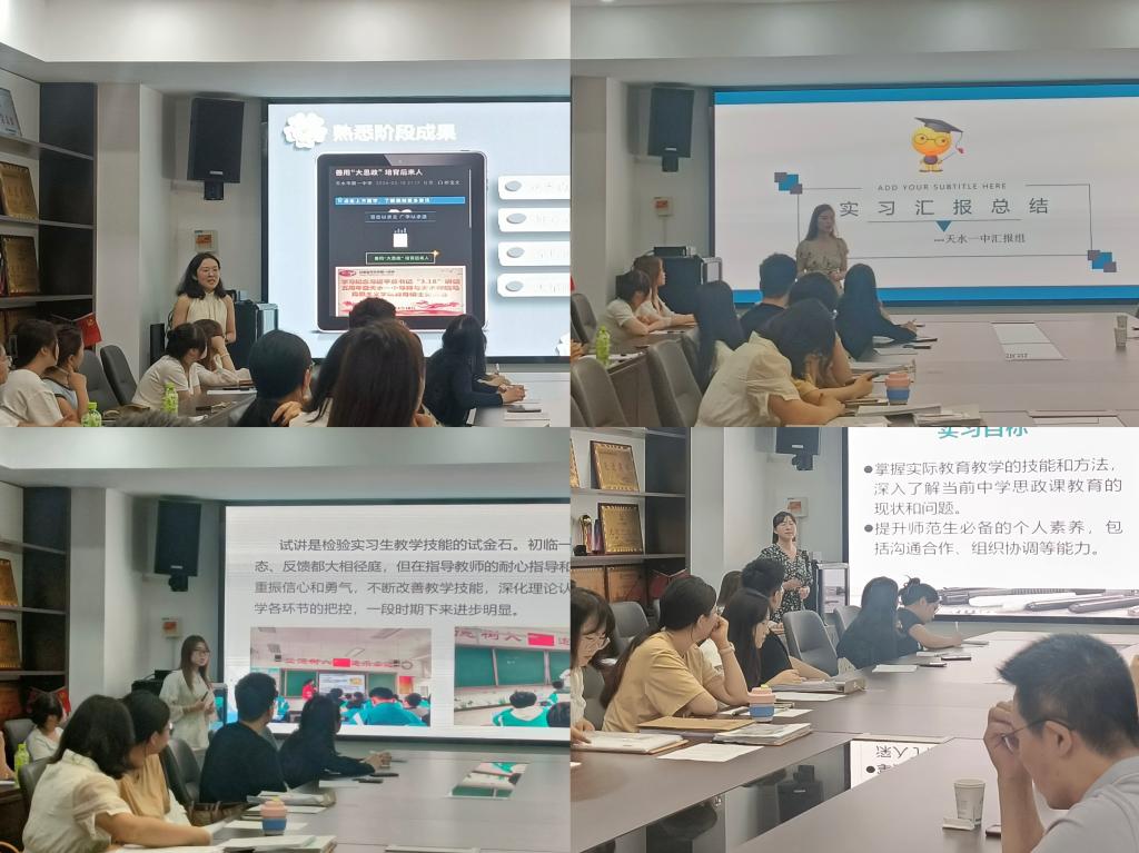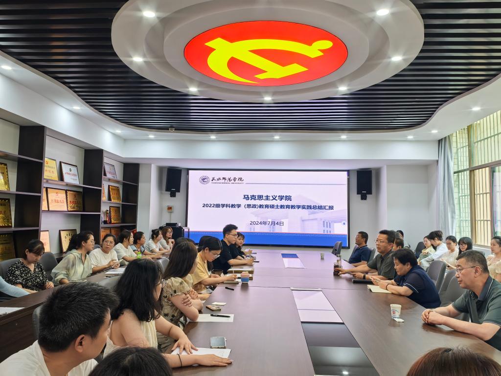 教育教学实践是教育硕士成长中的重要培养环节,是锤炼教育硕士教学技能和提升综合素养的“练兵场”和“试验田”。在天水市第一中学(麦积校区)、天水市第二中学和天水市逸夫实验中学三个实践教学基地参加集中实践教学的23名2022级学科教学(思政)教育硕士近日圆满完成实践教学任务返回学校。7月4日下午,365英国上市集团举行教育硕士集中实践教学汇报会,研究生导师和2022级学科教学(思政)教育硕士参加,2023级学科教学(思政)教育硕士旁听观摩。汇报会由刘建军院长主持。