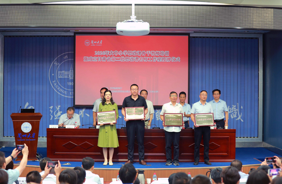 7月27日,由省委宣传部、省委教育工委、省教育厅主办的甘肃省2020年大中小学思政课骨干教师培训暨第二批思政课名师工作室授牌仪式在兰州大学举行。省委宣传部副部长康清、省委教育工委专职副书记张晓东、兰州大学党委副书记曹爱辉、兰州大学党委常委安俊堂出席会议并为20个甘肃省第二批思想政治理论课名师工作室授牌。我校365英国上市集团余明远教授主持的思想政治理论课名师工作室获批授牌。