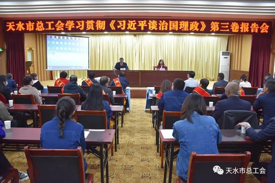 为深入学习贯彻习近平新时代中国特色社会主义思想,推动全市各级工会掀起学习《习近平谈治国理政》第三卷的热潮,引导干部职工全面系统学、深入思考学、联系实际学,系统掌握贯穿其中的马克思主义立场观点方法,统一思想,凝聚力量,10月22日,天水市总工会组织开展《习近平谈治国理政》第三卷宣讲活动。