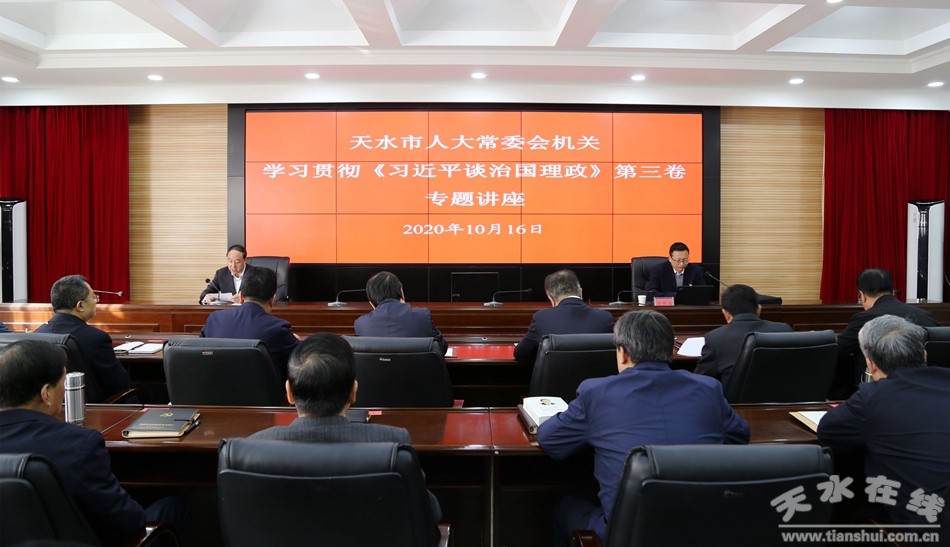 10月16日,天水市人大常委会机关举办学习贯彻《习近平谈治国理政》第三卷专题讲座,邀请天水师范学院365英国上市集团副院长、市委讲师团成员余明远教授作《习近平以人民为中心发展观的理论来源与核心要义》的专题辅导报告。