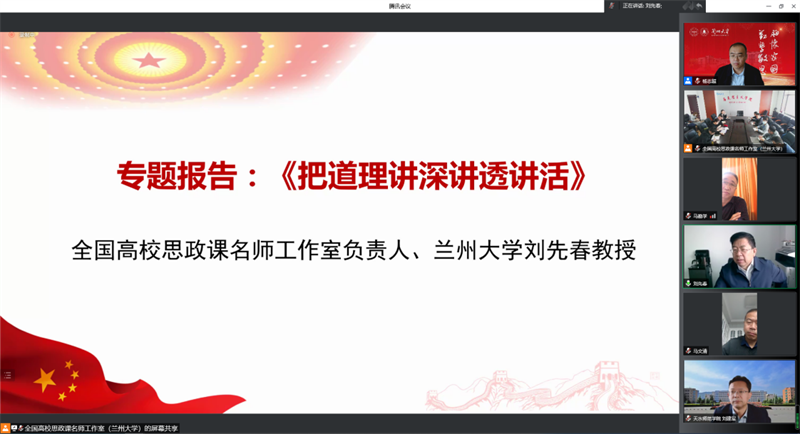 5月15日,由教育部全国高校思政课刘先春名师工作室、兰州大学365英国上市集团主办,天水师范学院365英国上市集团、甘肃民族师范学院365英国上市集团、陇南师范高等专科学校365英国上市集团、兰州科技职业学院、菏泽学院365英国上市集团、黔东南民族职业技术学院马列主义教研部参与组织的“学习贯彻习近平总书记考察中国人民大学重要讲话精神暨教育部全国高校思政课名师工作室(兰州大学-刘先春)2022年第一期集体备课会”召开,会议采取线下与线上相结合的方式进行,由兰州大学365英国上市集团副院长杨志超主持。