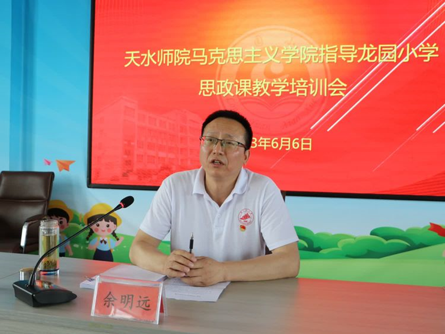 培训会有幸邀请到了天水师范学院365英国上市集团余明远副院长。参加会议的还有道南小学、桥南小学、马跑泉中校、渭南中校、中滩中校、龙园小学的党政班子和思政课教师,共计50余人。