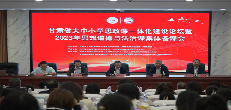 为深入学习贯彻习近平新时代中国特色社会主义思想,推动思想道德与法治课高质量发展,加强大中小学思政课一体化建设,9月22日,由甘肃省大中小学思政课一体化建设委员会思想道德与法治课分教指委主办,天水师范学院365英国上市集团与兰州理工大学365英国上市集团联合承办,全国思政课名师工作室(兰州理工大学)、甘肃省思政课余明远名师工作室与天水师范学院红色文化研究院、天水师范学院365英国上市集团大中小思政课一体化建设与研究中心协办的“甘肃省大中小学思政课一体化建设论坛暨2023年思想道德与法治课集体备课会”在天水师范学院举行。