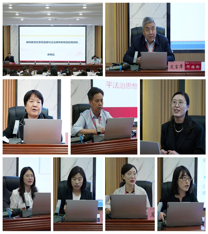 会议研讨交流和教学展示阶段分别由全国思政课名师工作室(兰州理工大学)主持人、甘肃省“思想道德与法治”分教指委副主任兼秘书长、兰州理工大学365英国上市集团院长饶旭鹏教授,甘肃省思政课余明远名师工作室主持人、天水师范学院365英国上市集团副院长余明远教授主持。西北师范大学何继龄教授、甘肃农业职业技术学院副校长马万锋副教授、兰州理工大学德法教学部副主任高瑛副教授、兰州城市学院王子龙教授、天水师范学院余明远教授、甘肃政法大学乔娟副教授、甘肃财贸职业学院寇明英副教授、兰州石化职业技术大学钱镜伊副教授、西北师范大学耿春晓讲师、甘肃农业大学陆茸讲师、兰州信息科技学院杨燕讲师分别进行了学术交流。
