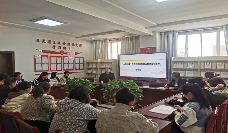 余明远教授围绕《“大思政课”与名师工作室建设的体会和思考》主题,从“大中小学思政课一体化”建设的发展演变、“大思政课”的科学内涵、“大思政课”建设的着力点、“大思政课”建设中名师工作室的应有作用等七个方面进行了详细阐述。