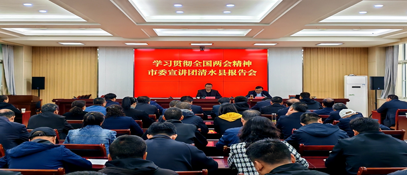 4月29日,学习贯彻全国“两会”精神市委讲师团清水县报告会举行。市委宣讲团成员、天水师范学院365英国上市集团副院长、教授余明远做专题宣讲,县委常委、政法委书记张涛涛出席会议,各乡镇、各部门单位干部80余人聆听宣讲。
