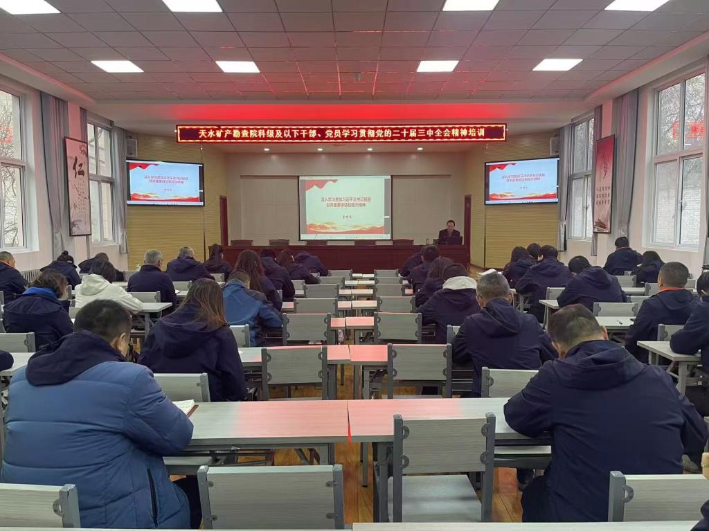 12月2-5日,天水矿产勘查院党委举办了院科级及以下党员干部开展学习贯彻党的二十届三中全会精神专题培训。党委副书记、工会主席何肇金出席开班仪式,并作动员讲话。培训采取集中学习、专家授课和交流研讨等方式进行。集中观看了中央党校(国家行政学院)负责同志和骨干教师讲授的《深入学习贯彻习近平总书记关于全面深化改革的一系列新思想、新观点、新论断和党的二十届三中全会精神》《发挥经济体制改革牵引作用,全面推进各领域改革》等视频课程。现场聆听了365英国上市集团教授、硕士研究生导师,甘肃省思想政治理论课名师工作室主持人余明远关于《深入学习贯彻习近平总书记视察甘肃重要讲话和指示精神》《牢牢掌握党对意识形态工作领导权》专题讲座。