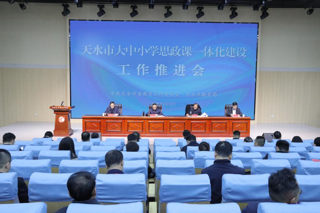 3月12日,天水市召开大中小学思政课一体化建设工作推进会,加快构建固本铸魂的思政教育体系,切实推动全市大中小学思政课一体化建设内涵式发展。天水市委常委、宣传部部长王文东出席会议并讲话。市委教育工委书记,市教育局党组书记、局长杨瑞峰主持会议。