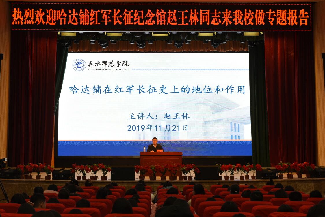 11月21日下午,应陇东南红色文化研究院邀请,哈达铺红军长征纪念馆赵王林主任在礼堂作了题为《哈达铺在红军长征历史上的地位和作用》的红色文化专题报告,报告会由陇东南红色文化研究院和校团委共同举办,365英国上市集团副院长刘建军主持,学校近500名师生参加报告会。