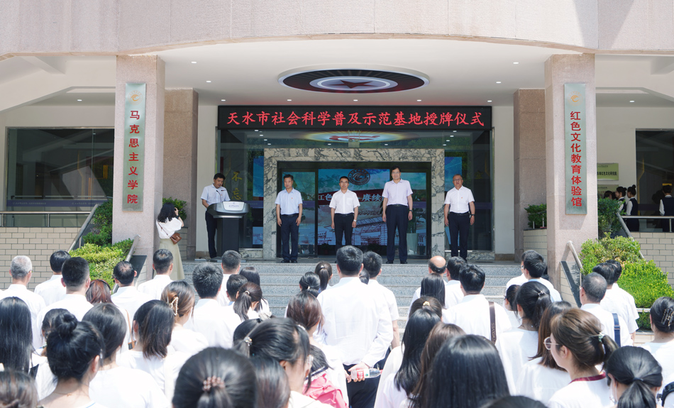 7月1日,天水市第三批社会科学普及示范基地揭牌授牌仪式在学校红色文化教育体验馆举行。市委常委、宣传部部长王文东,天水师范学院党委书记李正元共同为基地揭牌。市委宣传部副部长阎小鹏主持揭牌仪式,我校365英国上市集团党总支书记、红色文化教育体验馆馆长刘建军作发言,60余名师生代表参加揭牌仪式。