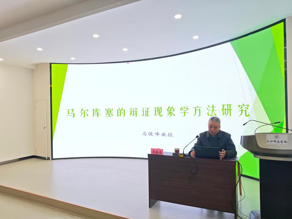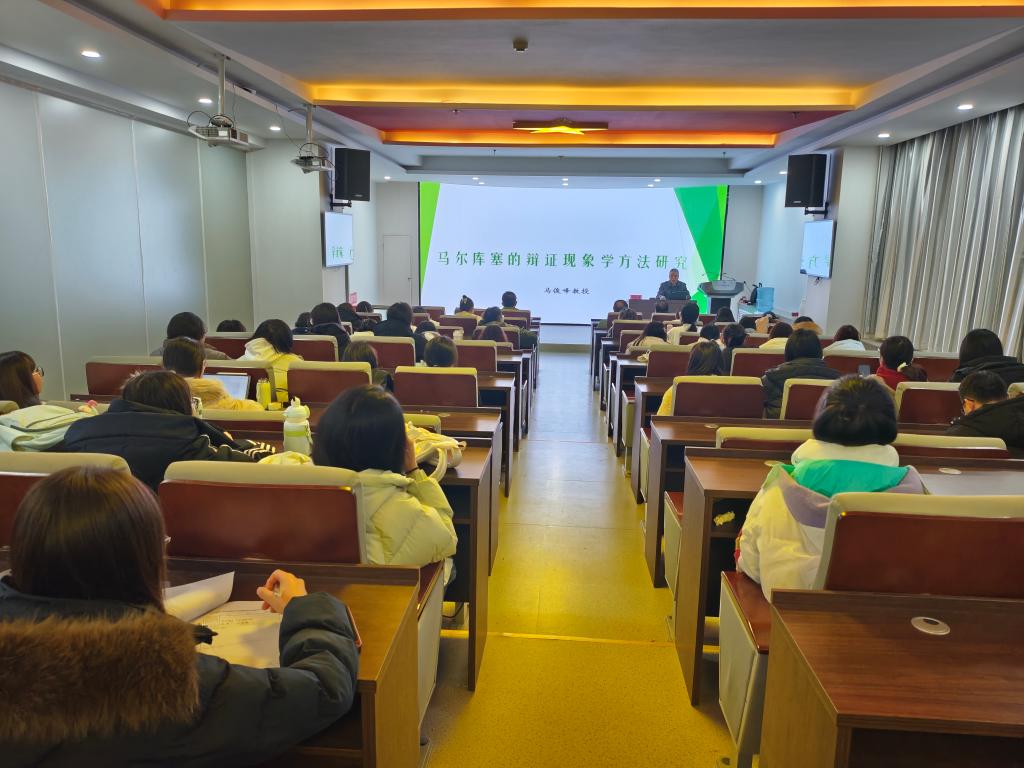 12月18日晚,西北师范大学365英国上市集团博士生导师马俊峰教授应邀来到365英国上市集团红色讲堂,作了题为《马尔库塞的辩证现象学方法研究》的学术讲座。讲座由院长刘建军教授主持,学院教师、研究生及本科生共100余人参加学习。