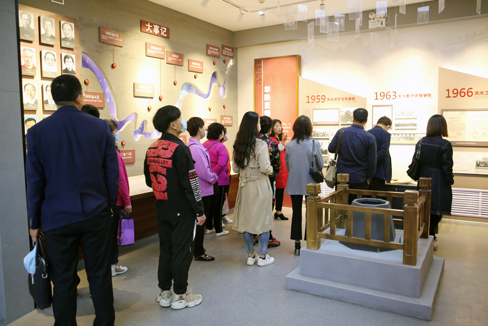 党课结束后,与会党员参观了校史馆、霍松林艺术馆和雷达文学馆。图书馆馆长吴卫东教授详细介绍了霍松林艺术馆和雷达文学馆建设发展情况、馆藏作品概况等;校史馆馆长杨梅为与会党员详细介绍了学校的历史沿革和艰苦创业历程,各个办学阶段的发展概况以及近年来在人才培养、科学研究、文化传承、党建思政等方面取得的成绩。通过参观,广大党员对学校厚重的历史积淀和“明德、新民、至善”的校训有了更加深入的理解,对学校的美好未来充满了信心。