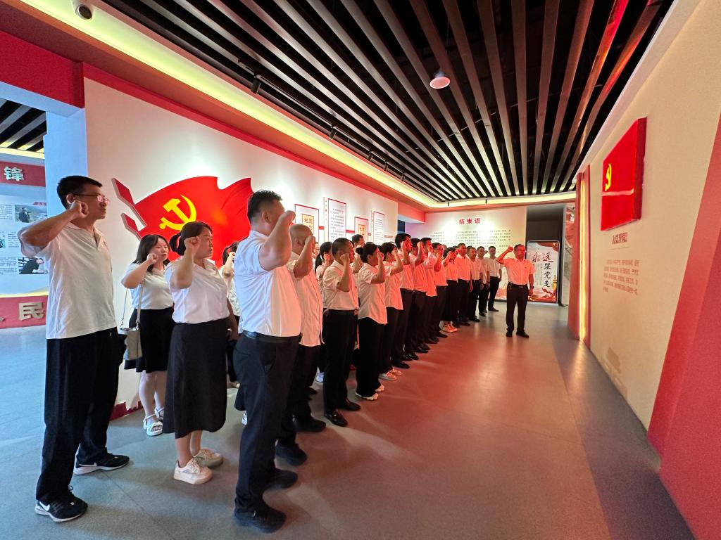 逸夫实验中学全体党员面向党旗庄严宣誓,重温入党誓词,认真学习了红色文化教育体验馆陈列和展示的内容,分党支部开展了活动。