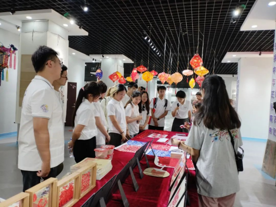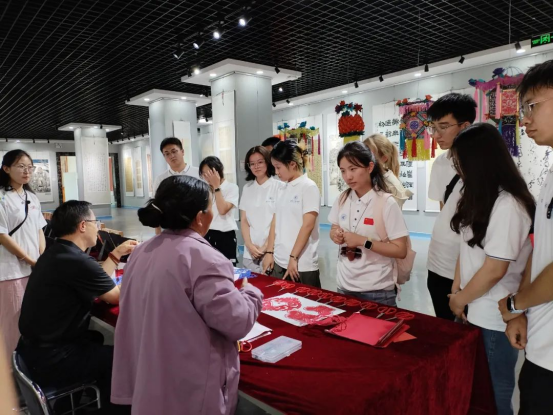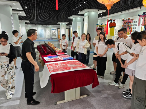 会宁是一片浸润着红色基因的土地,而文化馆正是串联起红色记忆与传统文化的重要纽带。同学们步入非物质文化遗产展厅,在讲解员的带领下,一边回溯会宁作为红军长征胜利会师地的峥嵘岁月,一边探寻非遗技艺中蕴含的红色密码。国家级非遗会宁剪纸里,既有对农耕生活的描绘,更有以长征故事为题材的经典作品,剪刀游走间,红色历史被定格成永恒的艺术;省级非遗会宁皮影戏《大墩梁》片段,更是以激昂的唱腔、铿锵的鼓点,将那段波澜壮阔、用生命守护阵地的历史鲜活呈现。在光影流转中诉说着不屈的斗争精神。红色精神与非遗技艺在此碰撞,让大学生们深刻体会到:传统文化不仅是民族的根脉,更是红色精神的鲜活载体。