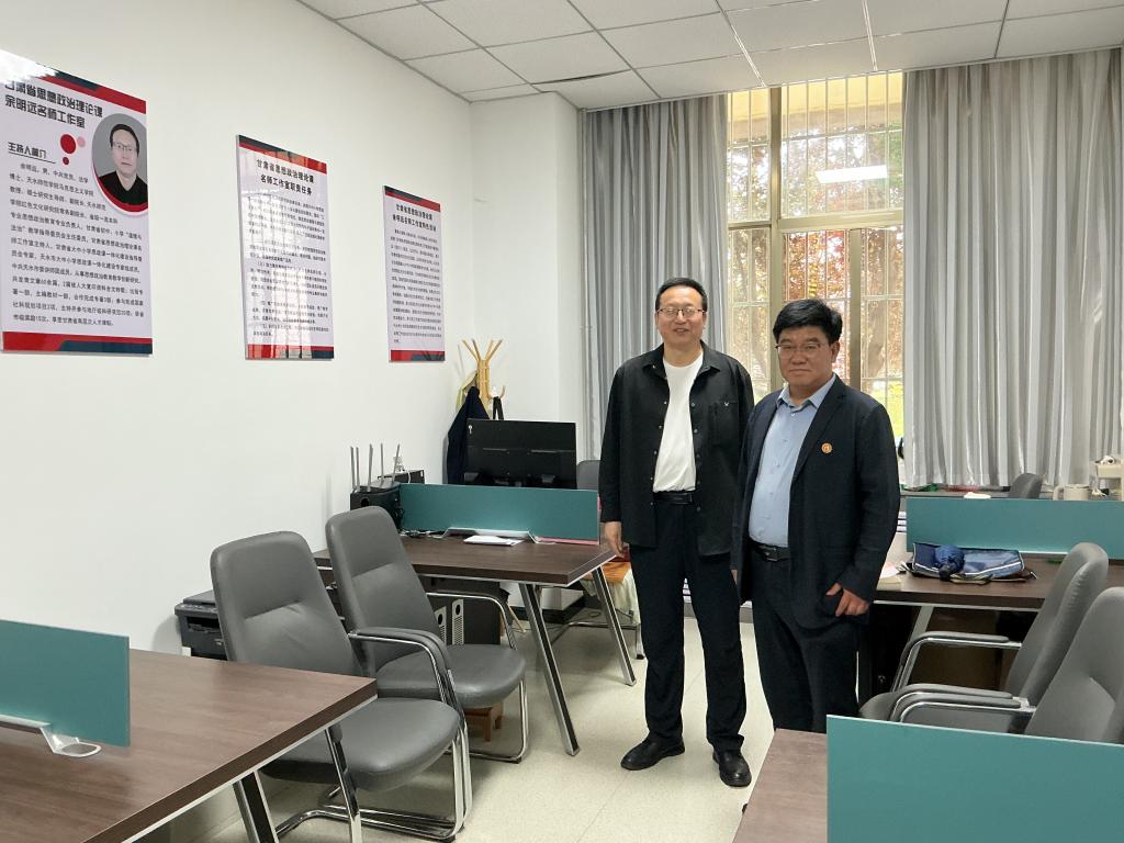 为高质量完成党的二十届四中全会精神说课展示活动,陇西县文峰中学校长韩宏斌10月30日率队来名师工作室,围绕教育部直属单位、直属高校专家集体攻关,确定的小学、中学(初高中)、大学各学段开展四中全会精神融入思政课的说课主题,与名师工作室主持人余明远教授交流探讨了说课内容衔接递进及展示团队组建事宜。