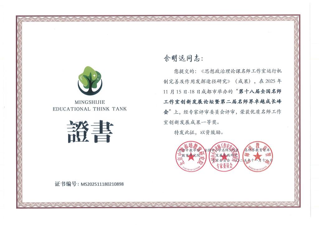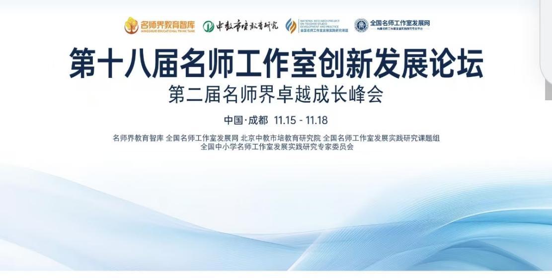 2025年11月15日—18日,名师界教育智库、全国名师工作室发展网、全国名师工作室发展实践研究专家委员会、全国名师工作室发展实践研究课题组与北京中教市培教育研究院在成都市举办了“第十八届全国名师工作室创新发展论坛暨第二届名师界卓越成长峰会”。