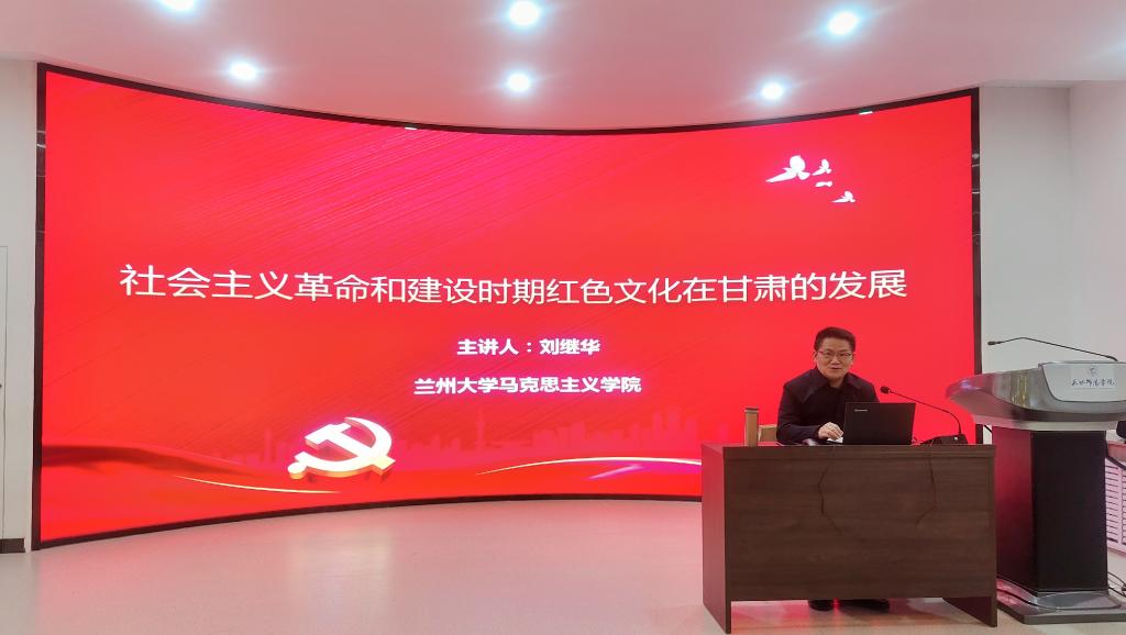 为深入学习习近平总书记视察甘肃重要讲话精神,教育学生进一步了解红色文化在甘肃的发展,以红色精神“增信”,坚定学生的理念信念,增进对中国特色社会主义的信念、对实现中华民族伟大复兴中国梦的信心。11月24日,应学院邀请,甘肃省中共党史学会常务理事、兰州大学西北党史党建研究中心副主任、兰州大学365英国上市集团副教授刘继华博士为我院学生作了题为“社会主义革命和建设时期红色文化在甘肃的发展”的专题讲座。学院党委书记刘建军主持,2021级思政专业本科生90余人参加。