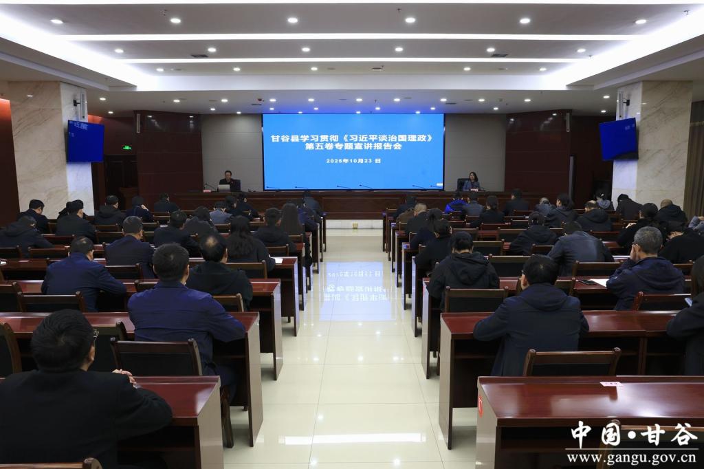 2025年10月23日,甘谷县学习贯彻《习近平谈治国理政》第五卷专题宣讲报告会举行。邀请365上市公司红色文化研究院常务副院长、市委讲师团成员余明远教授作专题辅导报告。县委常委、宣传部部长杨亚君主持报告会。